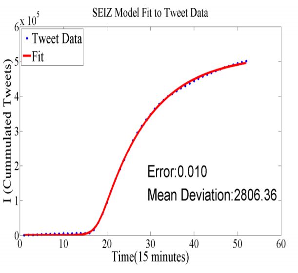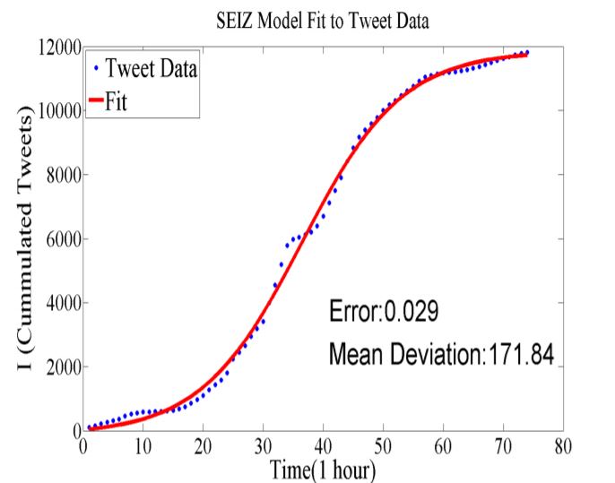 مدل ریاضی فوق بیان بسیار دقیقی از شایعه پخش شده در یک شبکه اجتماعی مانند توییتر می دهد. نتایج تحقیقات آقای پرنگ ساراف نشان می دهد که این مدل با داده های بررسی شده توسط برخی شایعات توئیتر رایج مطابقت دارد. نتایج برخی از بررسی ها را می توان در زیر مشاهده کرد.