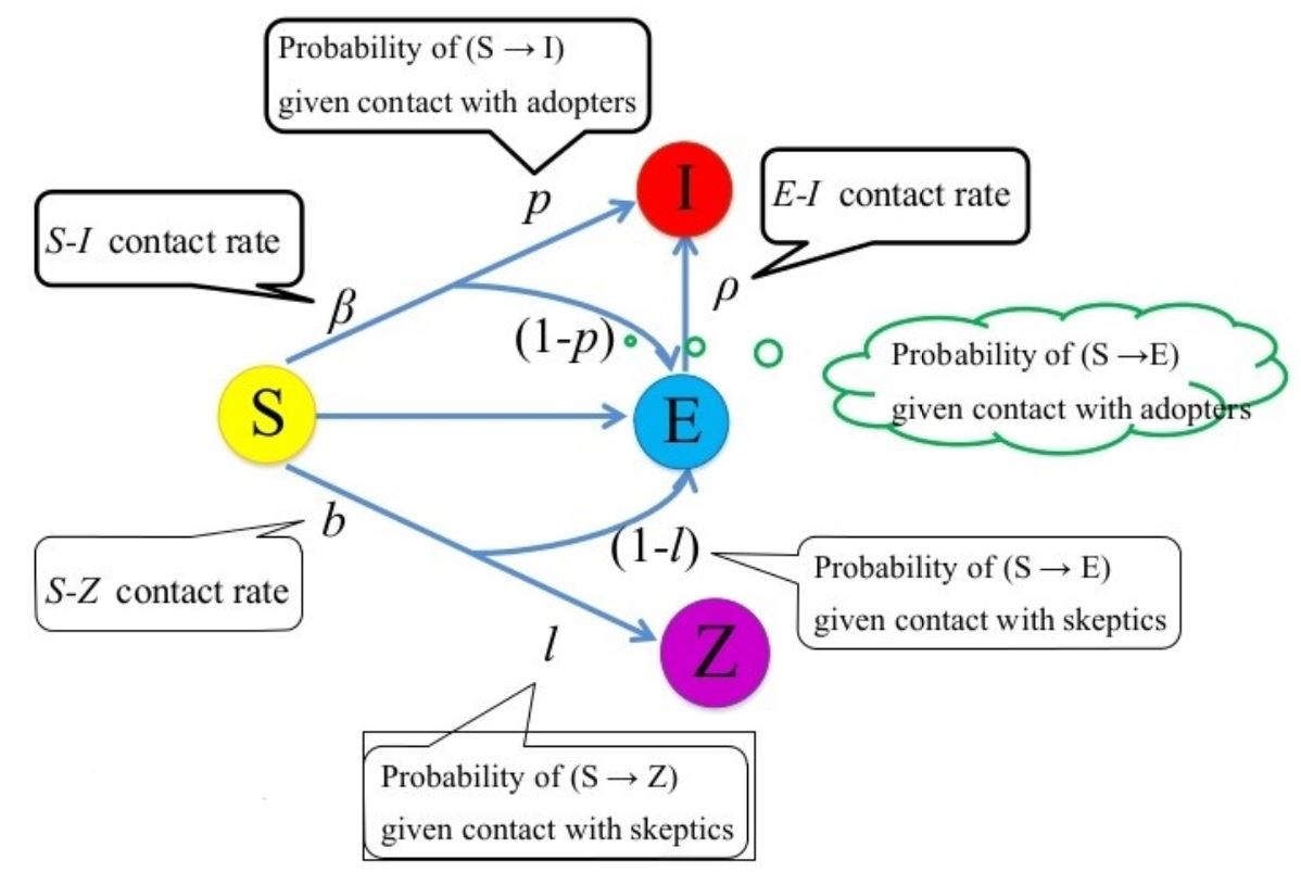 در زیر بیان یک مدل ریاضی برای شایعات و اپیدمی های خبری آورده شده است مدل SEIZ ما می پردازیم ما مردم را در شبکه های اجتماعی به چهار دسته تقسیم می کنیم: