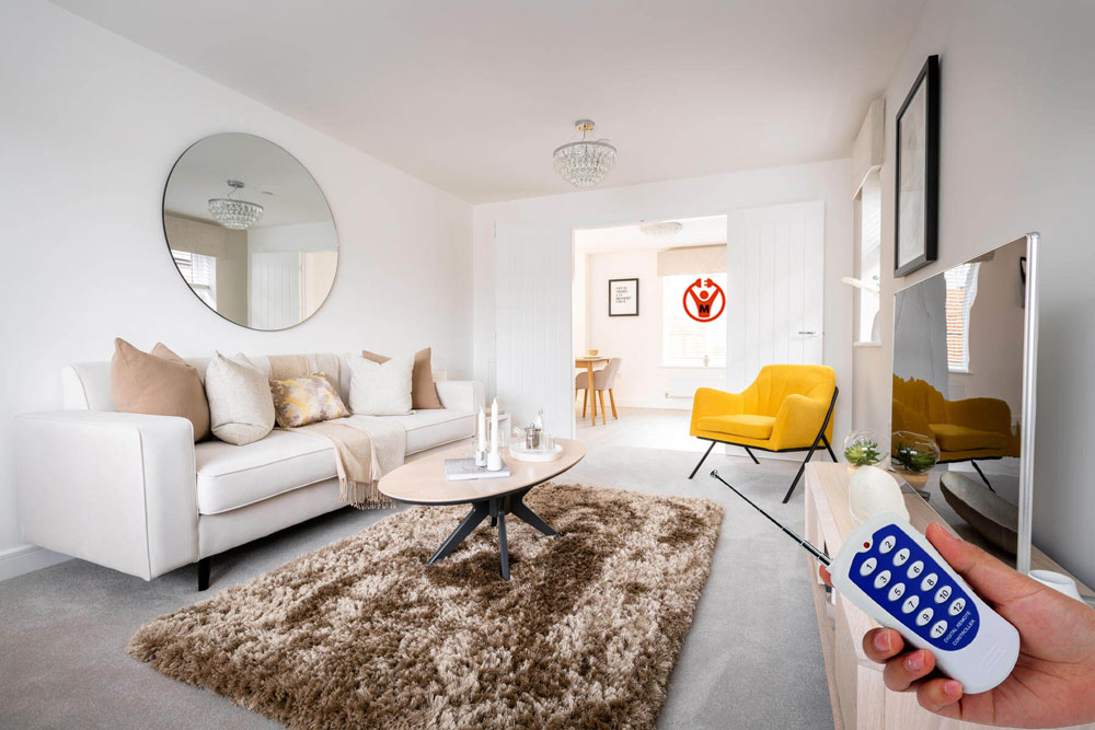 - هرگونه مانع فیزیکی مانند مبلمان دیوارها پرده ها اشیاء تزئینی و حتی گردوغبار روی سنسور IR را از مسیر دید مستقیم بردارید.