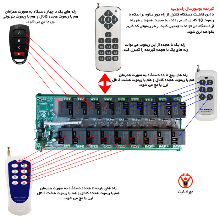 - برای کنترل های RF : تقویت کننده های سیگنال RF یا آنتن های خارجی می توانند برد و قدرت سیگنال کنترل از راه دور را افزایش دهند و آن را در برابر تداخل مقاوم تر کنند.