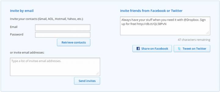 در شروع کار ما با یک انتخاب خلاق ، موفق شدیم دو میلیون کاربر را به سمت محصول خود جذب کنیم. برای ادامه جذب کاربران ، ابتدا برنامه ارجاع مبهم را اختراع کردیم. این سیستم با معرفی این محصول به دیگران و جذب کاربران جدید از حافظه رایگان کاربران Dropbox در اختیار کاربران قرار می دهد ، در واقع با استفاده از کاربر به عنوان بازاریاب و بدون هزینه و هزینه مناسب.
