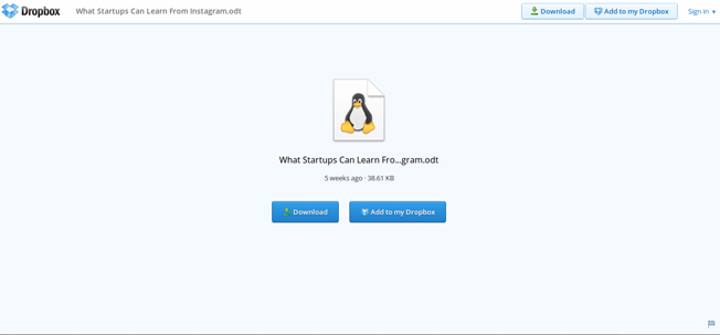 اما ما این مشکل را در Dropbox حل کرده ایم. اگر کاربر بخواهد یک پرونده را به اشتراک بگذارد ، می تواند از ویژگی Get Link موجود در دسک تاپ و وب استفاده کند. کاربرانی که می خواهند فایل را بارگیری کنند ، تصویری مانند این را مشاهده می کنند: