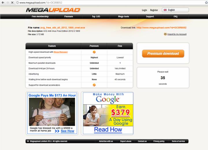 اکنون صفحه فوق را با صفحه بارگیری در Megaupload مقایسه کنید: