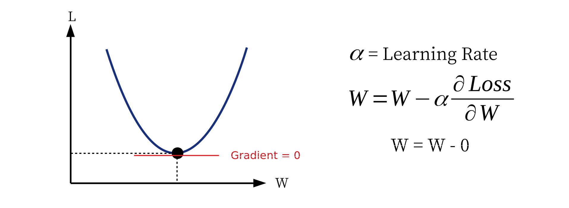 اگر شبکه ما به خوبی آموزش دیده باشد و بهترین w را کشف کنید. همانطور که در تصویر زیر نشان داده شده است ، مشتق برابر صفر است و مقدار w دوباره تغییر نمی کند. 🙂