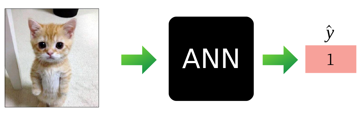 ما با استفاده از شبکه عصبی مفهوم گربه را به کامپیوتر آموزش خواهیم داد. اگر می خواستیم به شبکه خود تصویر بدهیم ، این شبکه به ما می گفت اگر گربه است. (اگر تصویر گربه 1 باشد ، در غیر این صورت 0 تولید می کند)