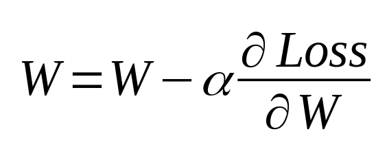 فرمول بالا برای به روزرسانی پارامتر شبکه ما w است. از همان فرمول برای به روزرسانی پارامتر b (w تغییر در b) استفاده می شود. آلفا ، یک عدد مثبت و معمولاً ناچیز ، به اصطلاح نرخ یادگیری است و از دست دادن روند در روند w از ضرر نسبت به w حاصل می شود.